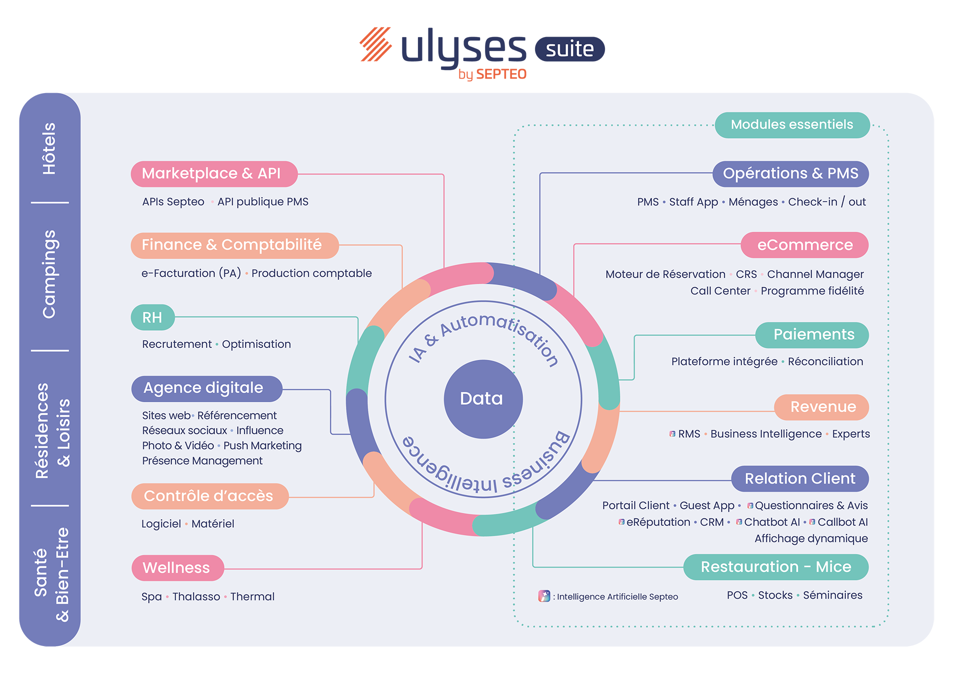 Ulyses Suite s’enrichit de la R&D de Septeo Brain et de solutions leaders désormais interconnectées : Qualitelis, Cool’n Camp, RevenuePilot, Witbooking, Misterbooking…